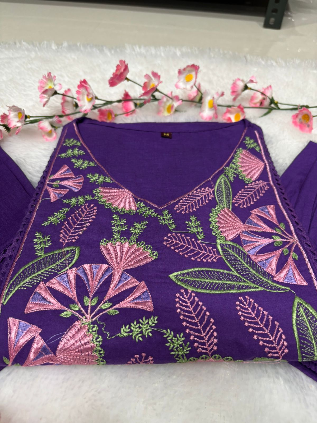 Women's Embroidered Natra Cut Cotton Kurta Set
