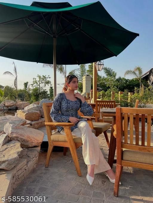 Step out in style with this fashionable and comfortable ensemble! The blue printed top features flared bell sleeves and a trendy square neckline, adding a touch of elegance to your look. Paired with white straight-fit pants, this outfit is perfect for casual outings, brunches, or semi-formal events.