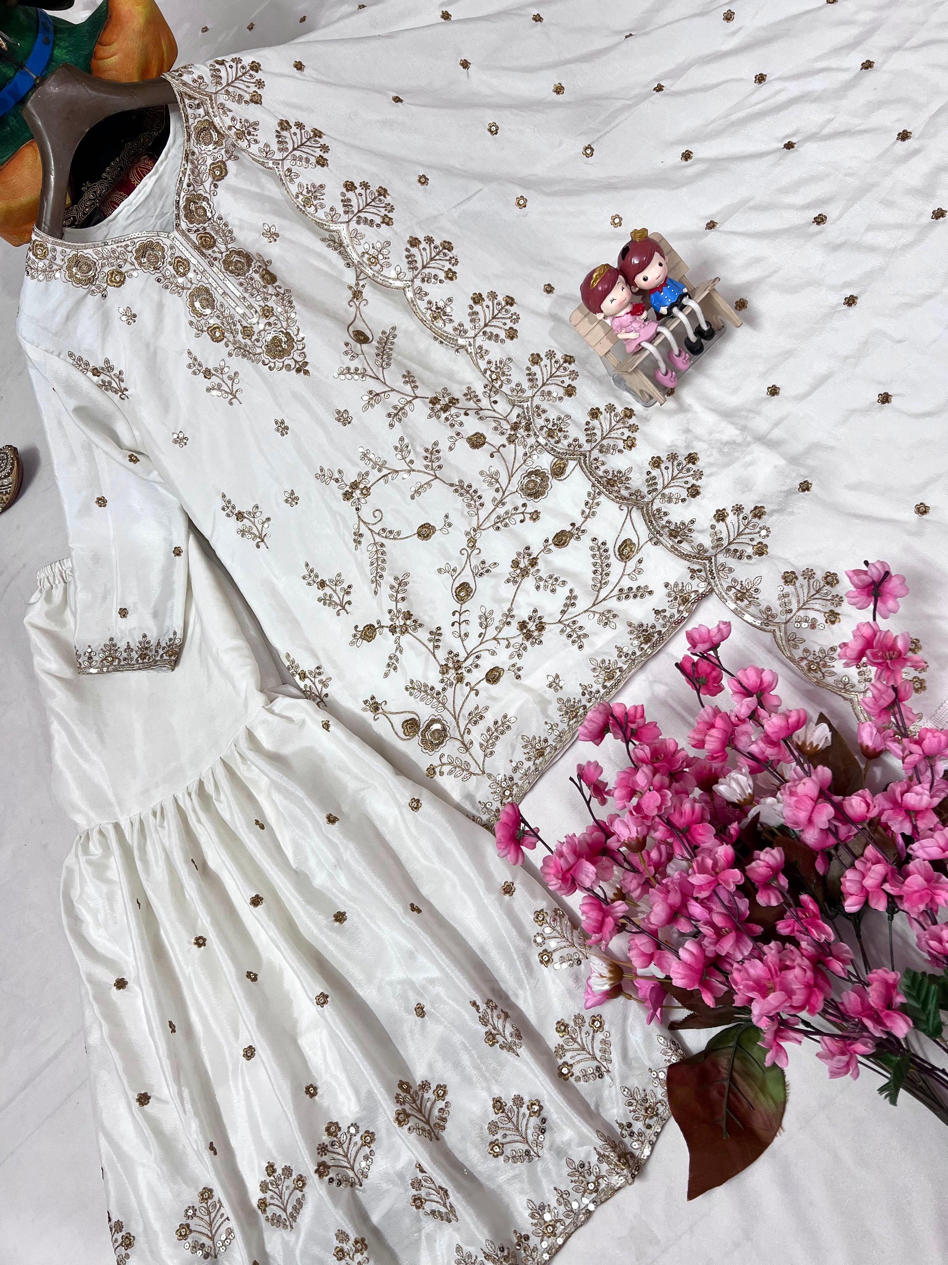 Designer Chinon Silk Sharara Set with Heavy Zari & Sequins Embroidery